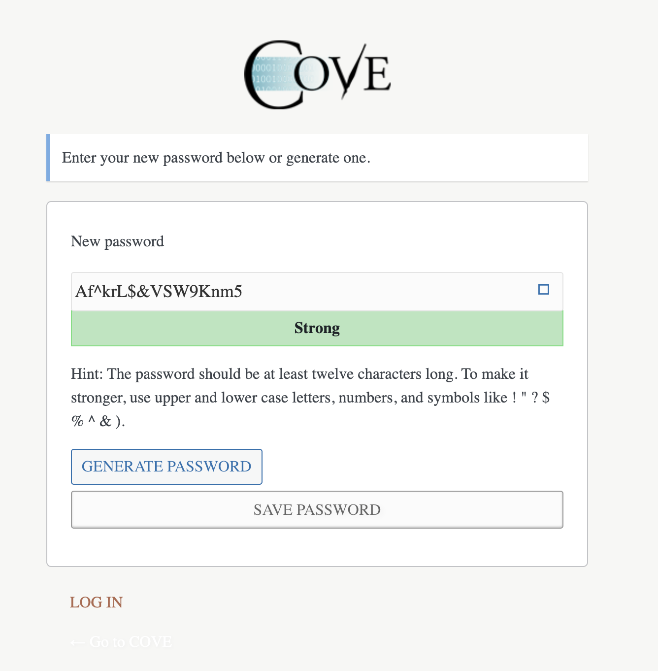 Enter your COVE username or email address: